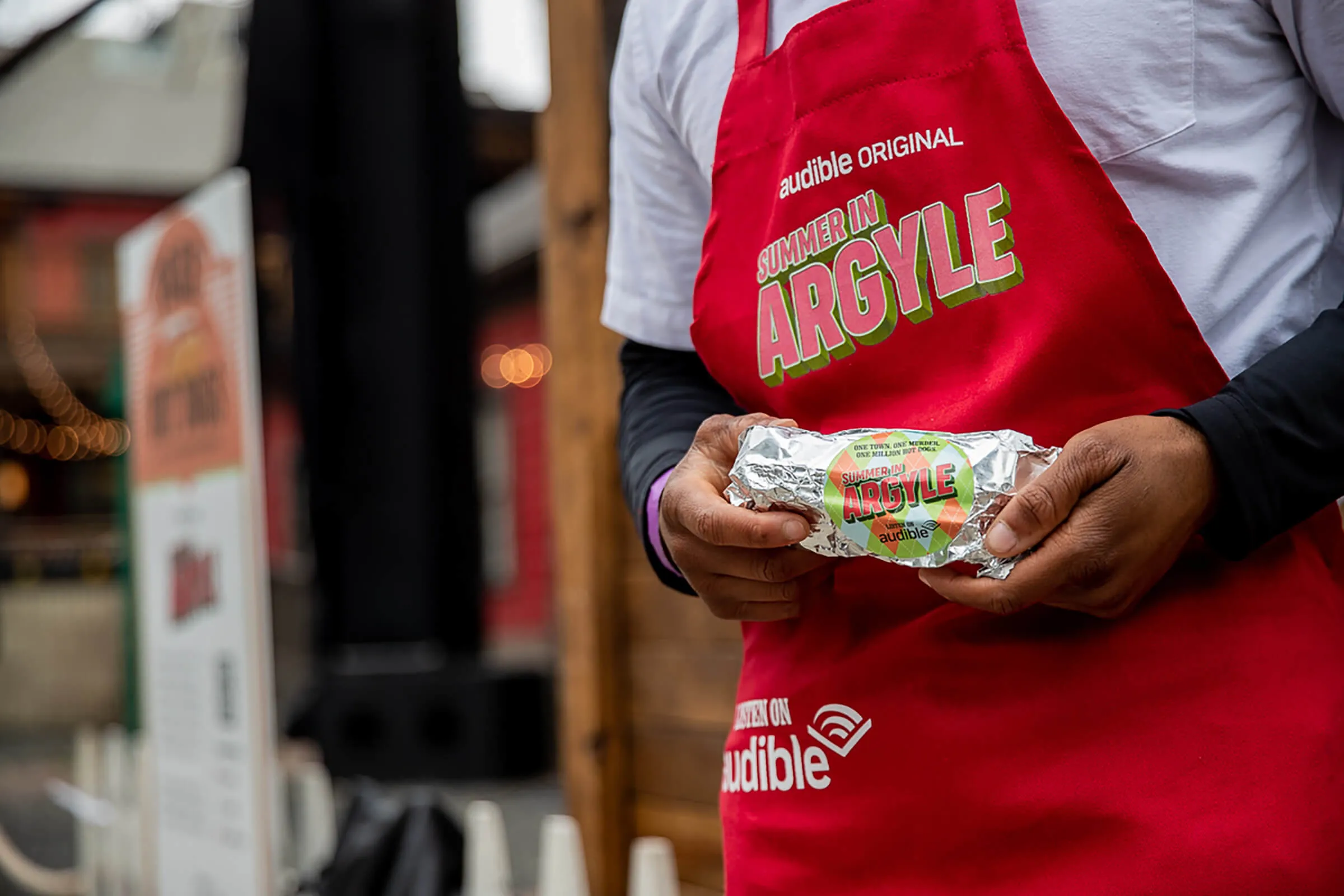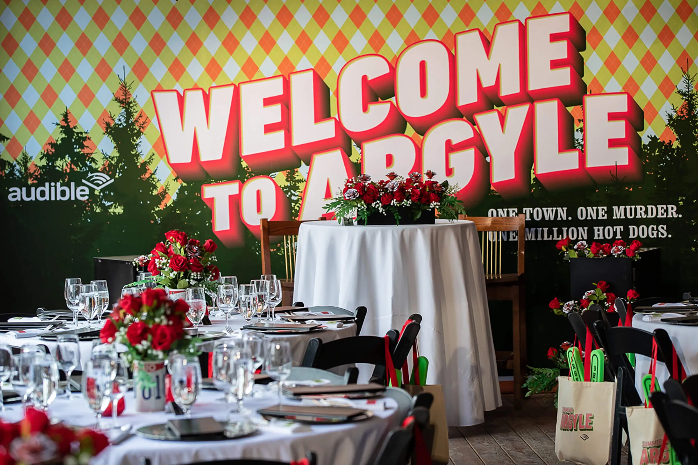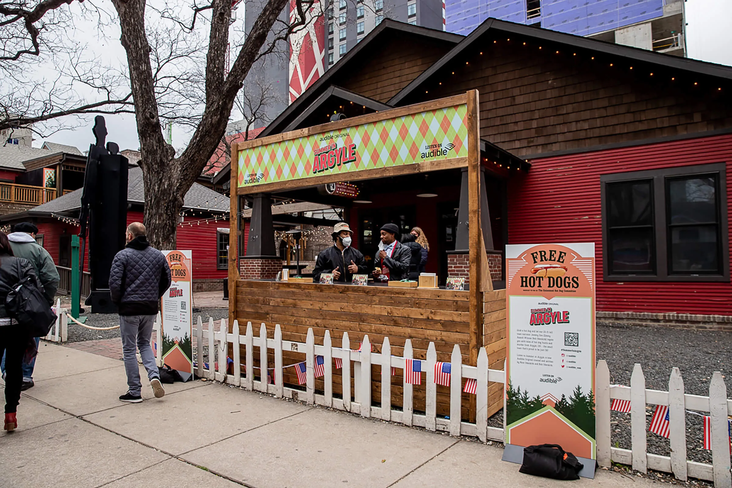 Bob Odenkirk and son, Nate, promoted their new original episodic program from Audible, Welcome to Argyle. We brought the town of Arygle to life. We had a catered menu of hot dogs done several different ways. Partnered with Civic Entertainment Group.