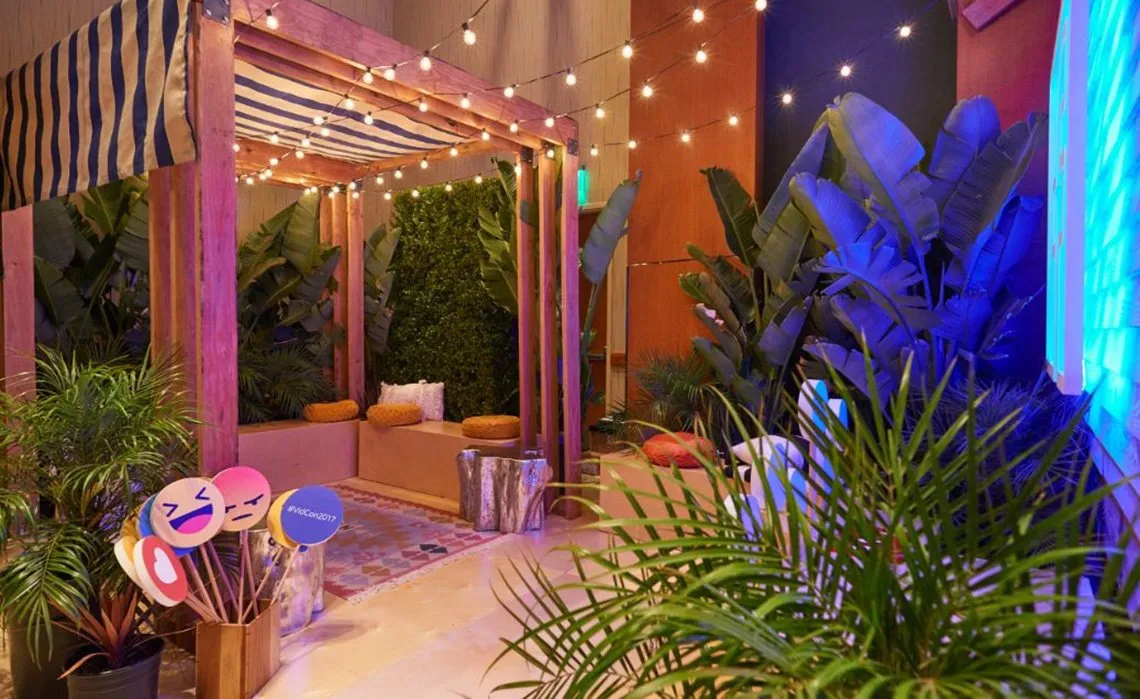 Creators were invited escape the VidCon chaos in an oasis where they could go LIVE in the content treehouse, conduct business in semi-private nooks, or kick their feet up in the various lounge spaces.